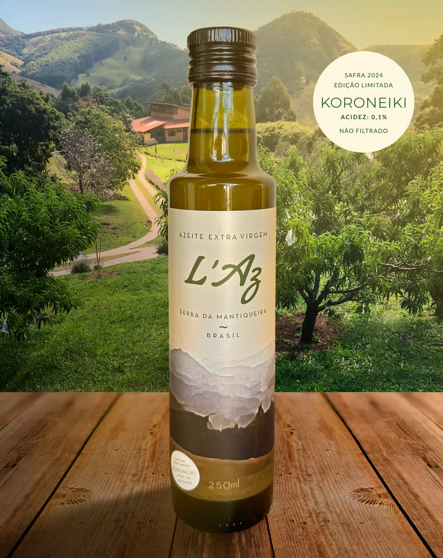Azeitona originária da Grécia, sabor frutado e picante. Não filtrado mantém as características naturais do azeite.