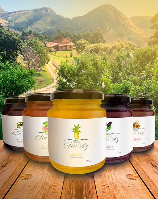Geleia artesanal produzida em fogão a lenha, no alto da Serra da Mantiqueira, no Distrito de Luminosa, Município de Brasópolis/MG, com frutas frescas colhidas manualmente na Fazenda Oliv’Az. Nossos produtos são feitos com as frutas da época, nesse caso, não é sempre que teremos todos os itens em nosso estoque, mas os produtos que estão disponíveis sempre terão a melhor qualidade e sabor.